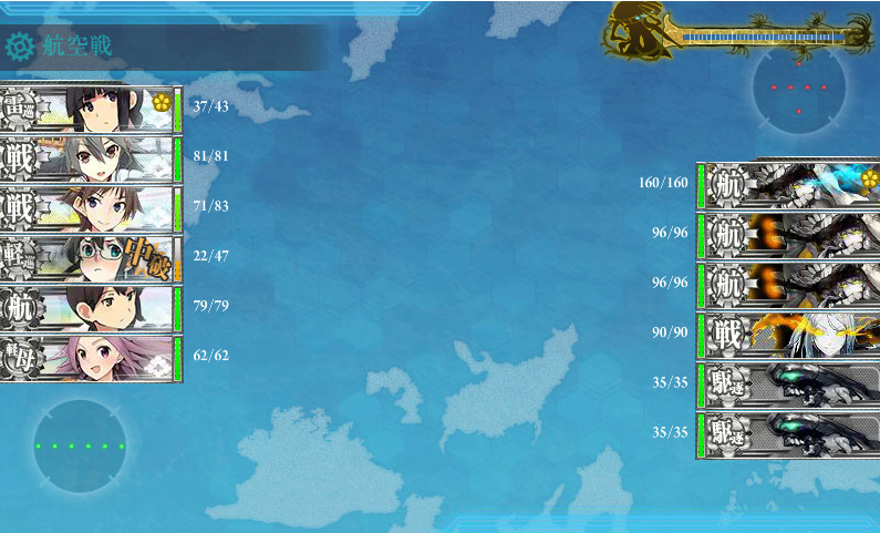 ただいま、ゲージ半分削ったところなんですが道中1隻大破の呪いにかかってしまって